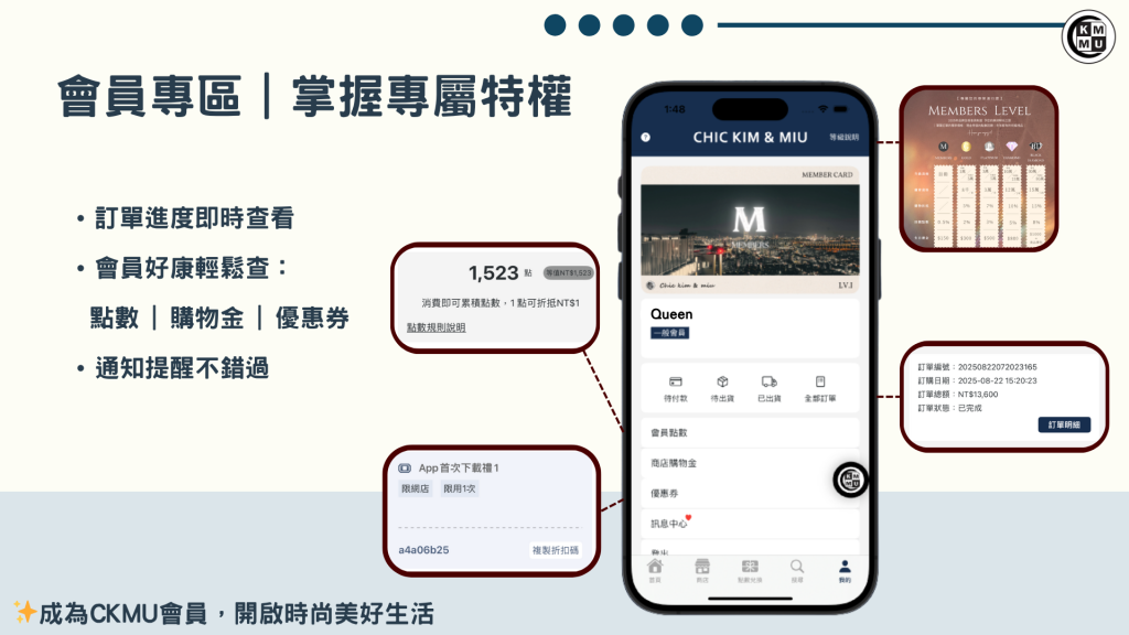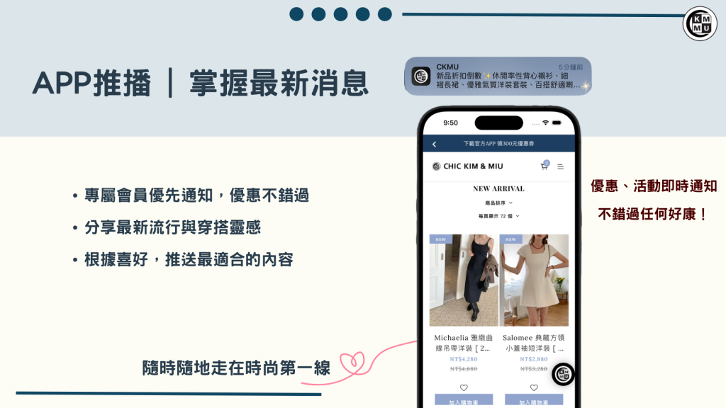 現在就下載 CKMU APP✨解鎖你的專屬美好,好康優惠不錯過,明星同款隨手入手。CKMU 陪你一起,讓生活成為最美的伸展台 💖